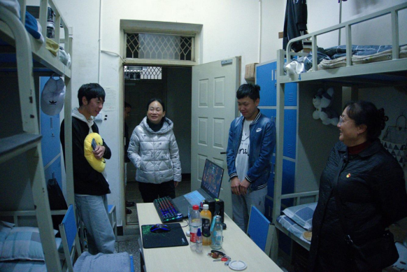 为了解学生学习生活情况,关心学生日常生活问题。11月10日晚19点,校长陈颖、学生处处长李广涛、ALLWINCITY万象城党总支书记王春莲及辅导员朱波、毛颖共同前往五栋ALLWINCITY万象城21级男生宿舍进行走访,并对同学们表示慰问和关心。