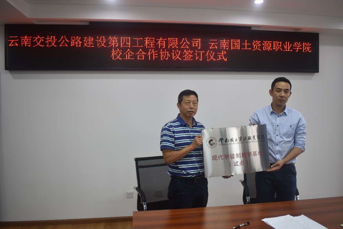 为进一步强化校企深度合作,不断优化人才培养方案,适应应用型高职院校建设发展要求,促进学院在人才培养、专业建设等方面与市场经济发展需求的紧密结合,2020年7月20日,ALLWINCITY万象城与云南交投公路建设第四工程有限公司签订现代学徒制校企合作协议,云南交投公路建设第四工程有限公司相关负责人、ALLWINCITY万象城院长秦忠、ALLWINCITY万象城综合办主任周仲达、学院教师陈立、何雨洁出席签约及授牌仪式。