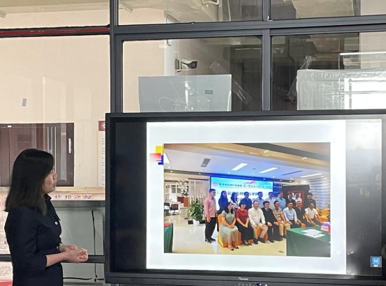 接着,邹艳红从此次走访企业的背景,走访企业的概况、管理方法、实习岗位性质和内容等进行了分享。她介绍本次广东云浮石材的走访是和建设工程学院一起开展的,在与广东云浮石材行业协会签订共建产业学院的协议之后,又参观了云浮市科特机械有限公司。她认为此次走访收获颇丰。一方面,了解了企业的真实人才需求,有利于优化专业课程设置,有利于课程内容的选择,精准培养市场所需人才。另一方面,也了解了学院学生的实习、就业环境,为后期切实帮助、指导学生的就业和实习打下了坚实基础。