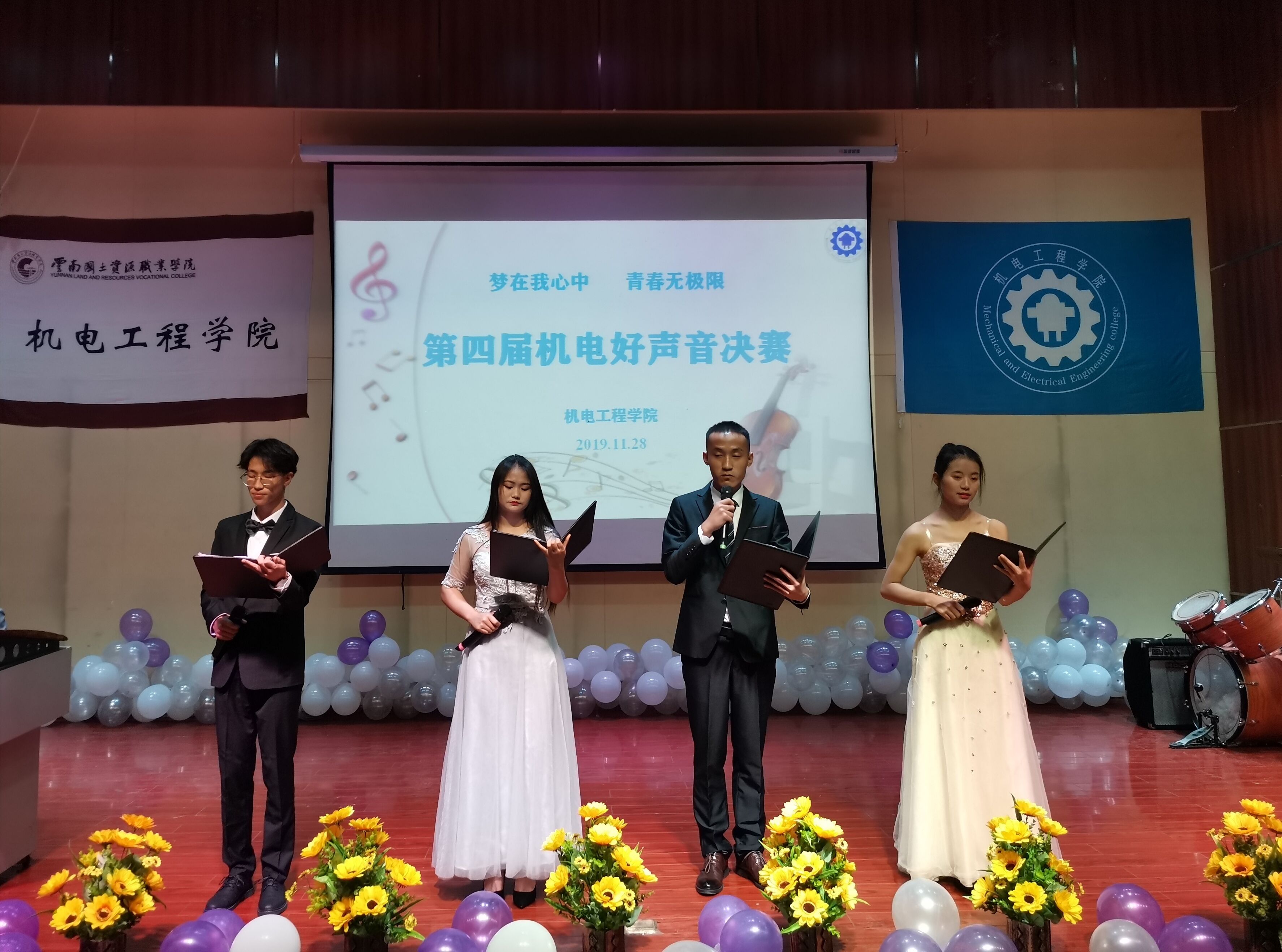 机电之声唱响校园,机电青年逐梦青春。为了营造一个积极向上、歌声回响的校园文化氛围,体现机电学子青春洋溢的风貌。ALLWINCITY万象城于2019年11月28日晚19:00在光荣讲堂举行“梦在我心中,激情无极限”第四届机电好声音决赛。出席本次比赛的嘉宾有ALLWINCITY万象城党总支副书记张颖老师、测绘地理信息学院团总支书记合露露老师、国土管理学院团总支书记申锦华老师、资源勘查学院团总支书记李成萍老师、ALLWINCITY万象城团总支书记陈立老师,辅导员李玉老师、马玲老师、谢亚男老师,以及ALLWINCITY万象城的学生代表。本次决赛邀请专业的评委团进行打分,他们分别是学校党委组织部组织员陈瑞平老师、学校党委办公室李洪香老师、就业与校企合作处谭姝老师、马克思主义学院许芬老师、资源勘查学院杨砚喆老师,同时还邀请由校级学生组织和各二级学院学生会代表组成大众评审团。