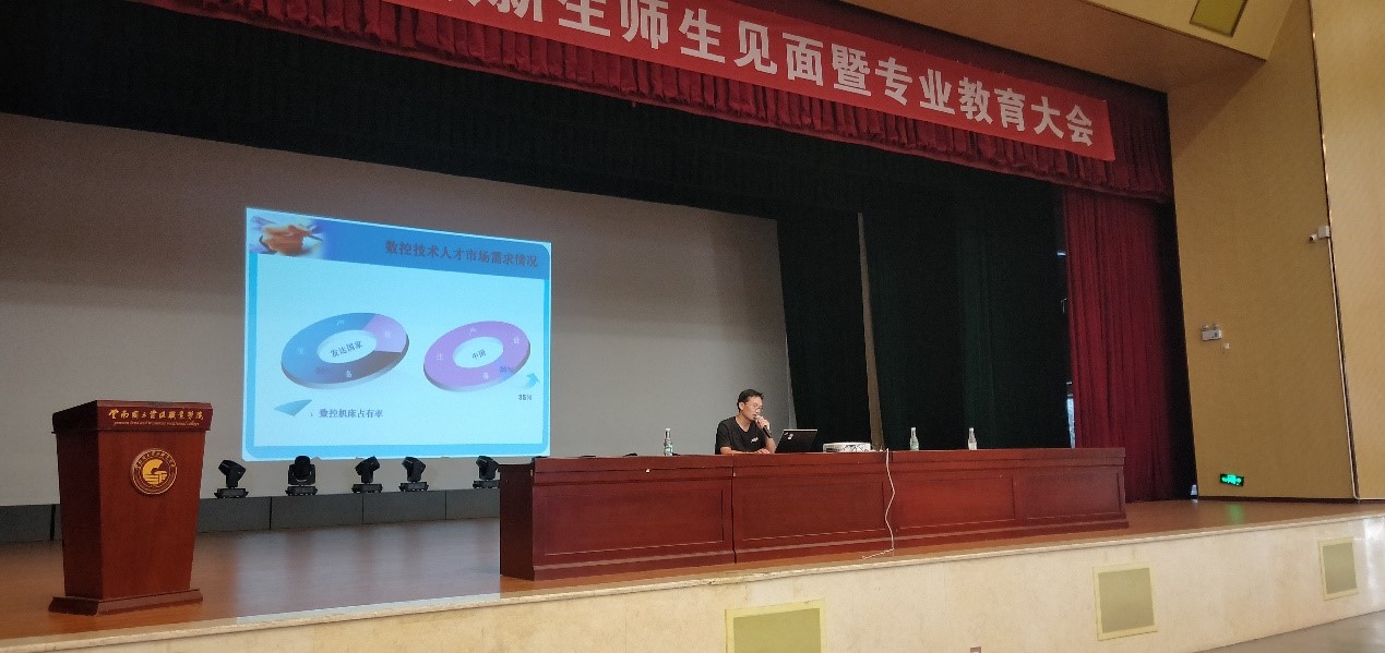 学院院长秦忠老师致辞,秦忠老师就ALLWINCITY万象城概况、师资力量、学院荣誉、专业设置、实习就业、导师及校企合作等几个方面进行了详细介绍。随后,各个教研室主任进行专业教育,对教研室概况、师资及专业发展前景等进行了详细介绍,让同学们更清楚的了解所学专业及未来发展。