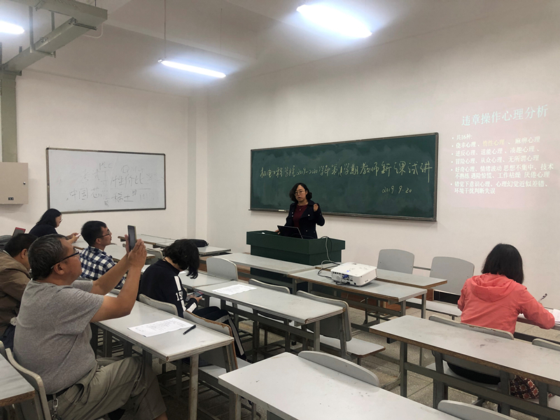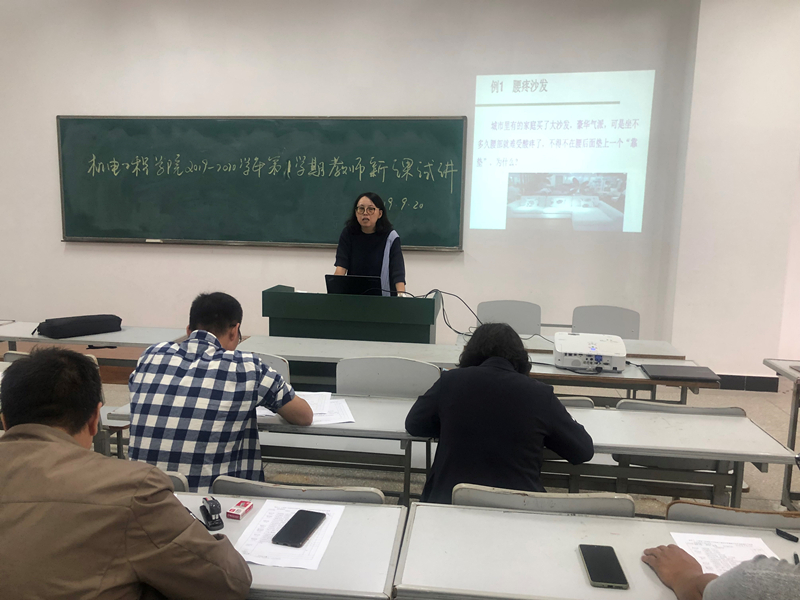 试讲过程紧张有序,5位新课试讲教师在讲课过程中或神意自若、落落大方,或语言流畅、表达清晰,或层次分明、逻辑严密,表现出了准备充分、内容准确、条理清晰、语言流畅等新教师的教学特点。