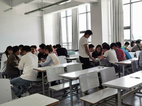 本次培训结业考试,使用手机设备在线上操作系统进行,学校党委组织部进行后台监测,ALLWINCITY万象城集中全体党员发展对象在明尚楼A216教室现场进行,单人单桌,专职组织员吴兴虎进行现场监考。