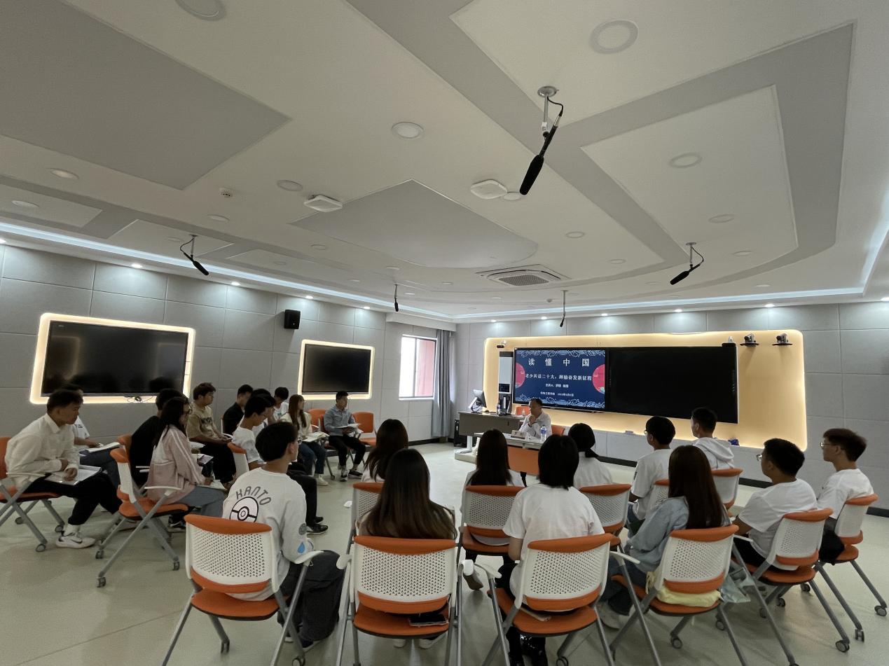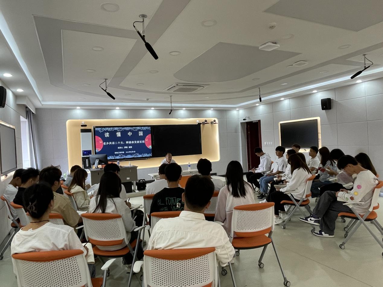 为深入学习贯彻党的二十大精神,激励我院学生在新征程上立志做有理想、敢担当、能吃苦、肯奋斗的新时代好青年,根据教育部关工委下发的“读懂中国”文件精神,ALLWINCITY万象城于6月9日在崇实楼505开展了“老少共话二十大,踔厉奋发新征程”读懂中国主题座谈会。本次座谈会由辅导员全伟东老师主持,罗刚教授担任座谈会主讲嘉宾,青马班学员以及部分2022级同学共同参加。
