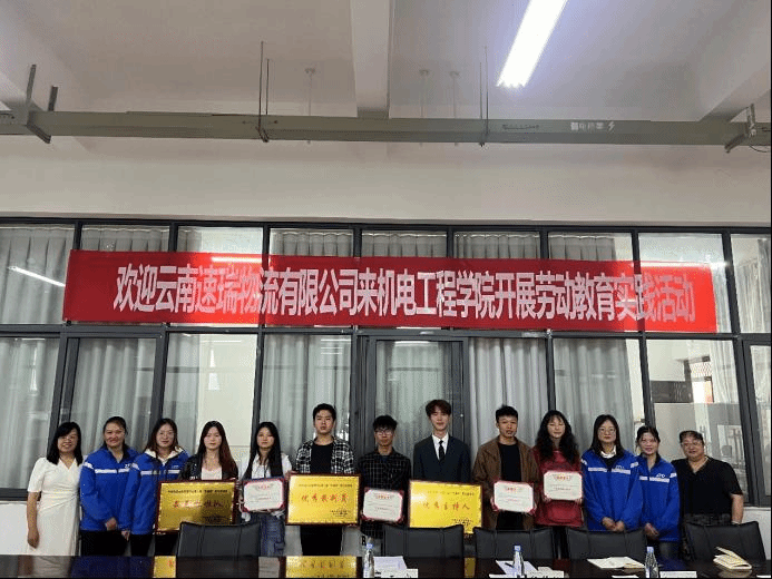 最后,云南速瑞物流有限公司行政部经理段琴仙等人还为前期到企业参加劳动教育实践活动的同学代表颁奖。