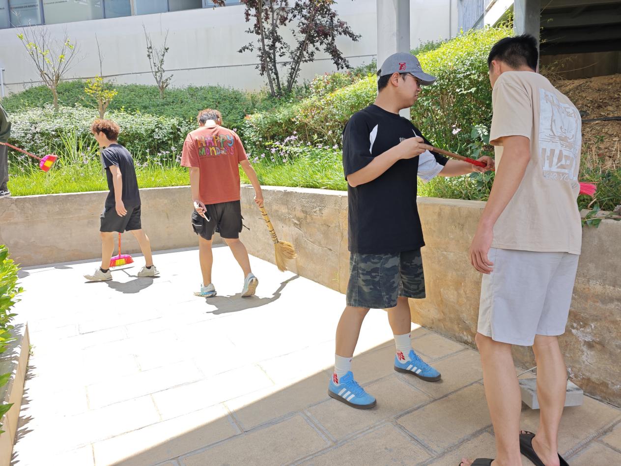活动伊始,同学们准时在明尚楼A201会议室集合。学生会主席团成员李子琦现场组织工作,有序发放扫帚、抹布等清洁工具,并根据清洁区域的面积与任务量科学分配人员。打扫过程中,大家分工明确、配合默契,全程保持高效有序。任务完成后,同学们自觉将工具分类归位,确保物资整理规范。