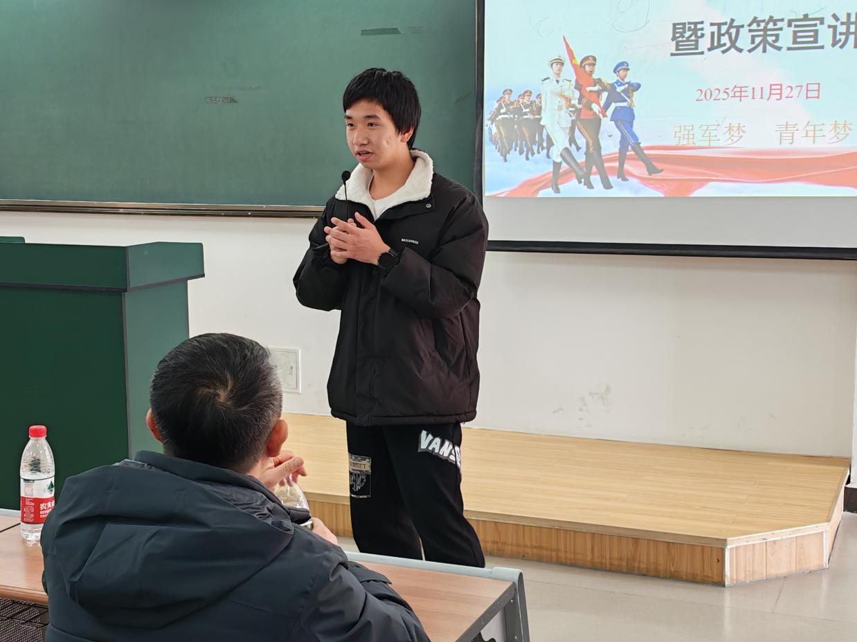 丁治祥老师就征兵政策进行现场答疑,明确同学们需通过“全国征兵网”进行线上报名,不接受线下报名,并现场解答了关于体检标准、服役待遇等热点问题。曹江涛老师进一步强调了报名时间、地点及相关注意事项。张文文老师鼓励同学们加强锻炼、认真学习。