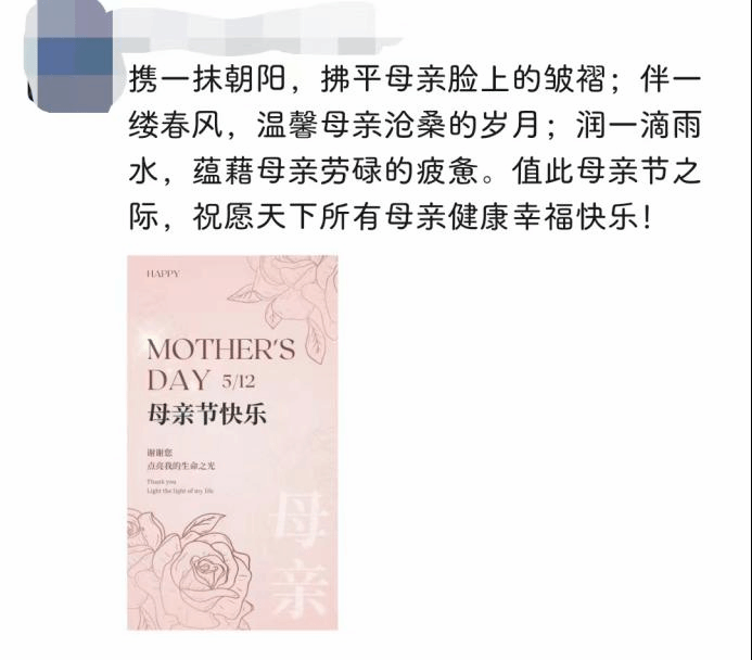 在这个温暖的五月,在第111个“母亲节”到来之际,来吧,跟随小电一起来看看我院师生的母亲节美好祝福!