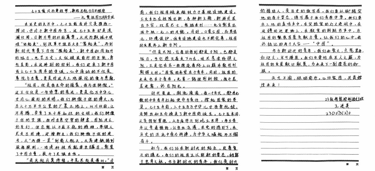 我院学子积极参与,用真挚语言,庆祝祖国母亲生日,展望中华民族伟大复兴的美好未来。本次征文比赛佳作频出,以下为部分优秀参赛作品: