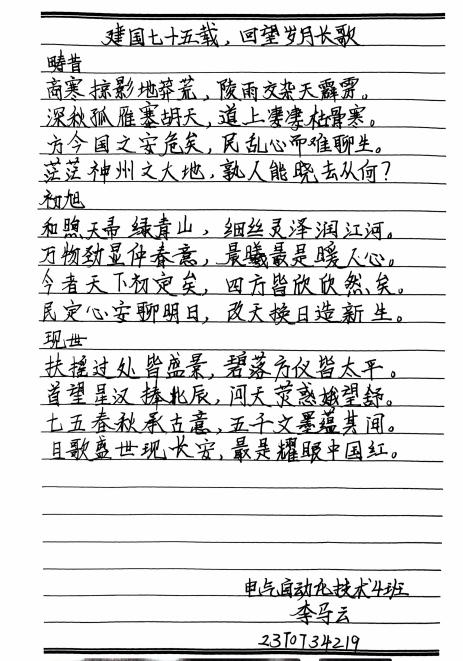 本次活动旨在借由文字之翼,点燃我院学子内心深处的爱国情怀,深情倾诉对伟大祖国的无限热爱与崇敬。值此祖国母亲七十五载华诞之际,我们共襄盛举,以笔墨描绘国家繁荣昌盛的壮丽画卷,颂扬这片热土上日新月异的辉煌成就。