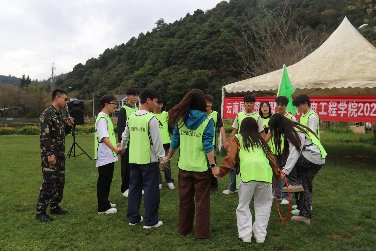 在专业教官的指导下,同学们通过随机报数迅速组建团队,共同完成了队名、口号和队旗的设计,并进行了风采展示,快速融入了集体氛围。随后,各小队相继参与了“珠行万里”“鼓动人心”等经典协作项目。这些活动寓教于乐,不仅考验了队员间的默契与沟通,更让大家深刻体会到资源整合与信任协作的重要性。