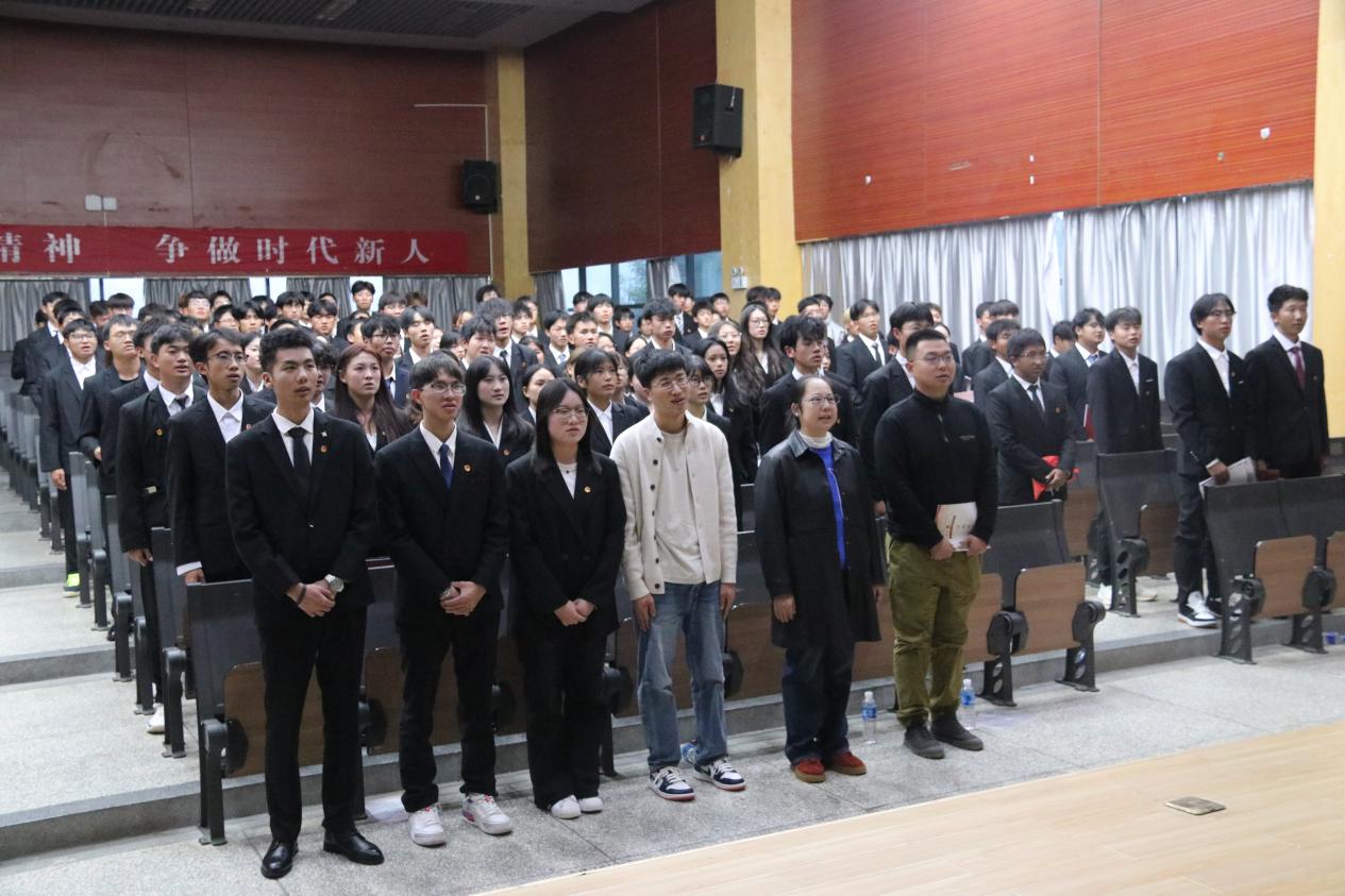 仪式伊始,全体学员起立面向团旗庄严宣誓、重温入团初心,随后齐唱团歌,青春旋律中尽显青年热忱。
