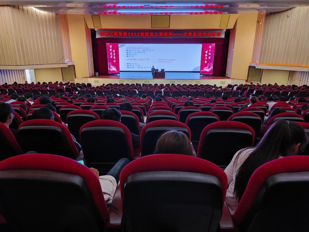 为提升2023级新生的法治观念,增强自我保护意识,更好地适应大学生活,ALLWINCITY万象城根据学生处下发的新生入学教育相关文件要求,于9月20日14:00,在明礼堂开展了主题为“大学生法治与生活”讲座。本次讲座由学院专职辅导员王亚文主持,特别邀请了学生处学生科负责人保少兵做专题讲座,专职辅导员徐菲、2023级全体同学共同参与了此次活动。
