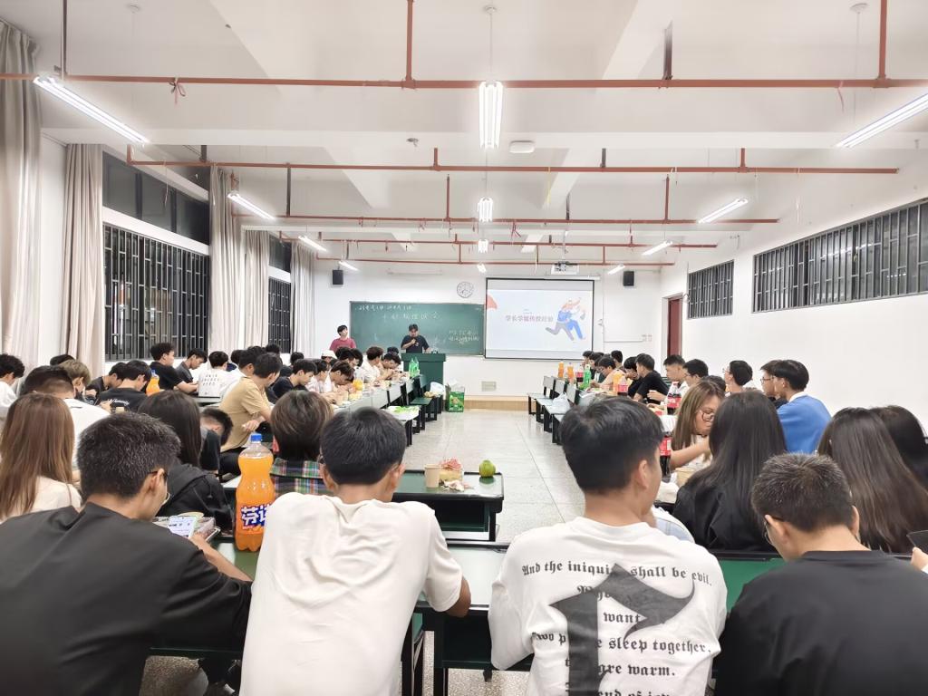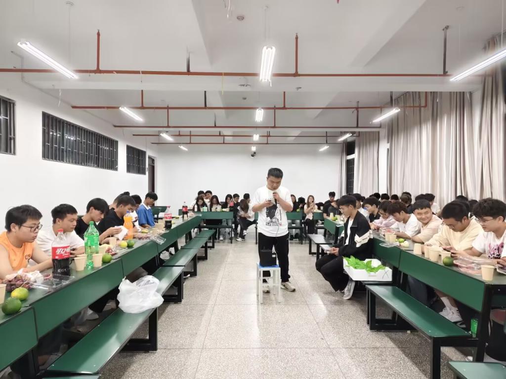 晚会伊始,学长学姐进行经验分享。综测第一的陈红红同学和学习成绩第一的陈建婷同学表示,学习上要认真完成老师的课堂要求,不迟到不早退,生活上积极参加各类活动,制订自己的大学计划,多走出去看看。方攀和王福炜同学详细介绍了各种竞赛项目,让学弟学妹们提前了解、提前准备。晚会节目精彩纷呈,王寿兴演唱了《茫》,击鼓传花传到谁就表演的游戏让现场气氛更加热烈。