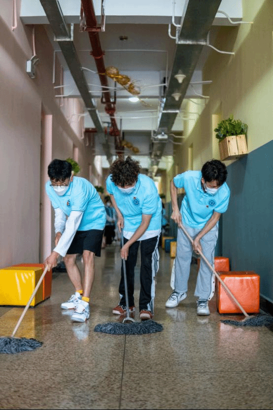 同时,志愿者们协助保洁阿姨和宿管老师对绘水苑1栋、3栋、5栋的楼道、走廊等区域进行了清扫,志愿者们分工合作,有的打扫走廊、有的擦拭扶梯、有的收整生活垃圾。大伙儿干劲十足、热火朝天、互相鼓励、表现突出,取得了师生的一致好评。