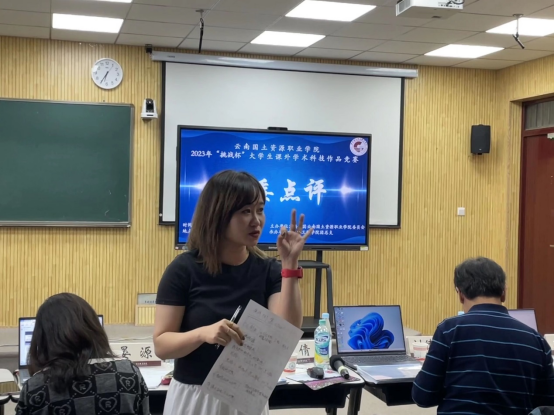 最后,评委代表对本次大赛作出点评。他们指出,本次比赛选题立足经济社会发展热点难点问题,紧贴社会和国家发展的政策战略;同时论文和调查报告逻辑清晰、论证严密,科创作品落到实处,具有较高实用价值;各团队代表沉着冷静,亮点纷呈,体现了国土学子的优良科学素养。同时,专家指出创新是一个永不过时的主题,希望全体参赛队员在今后的学习和职业生涯中也要不断思考创新,积极发扬创新精神。