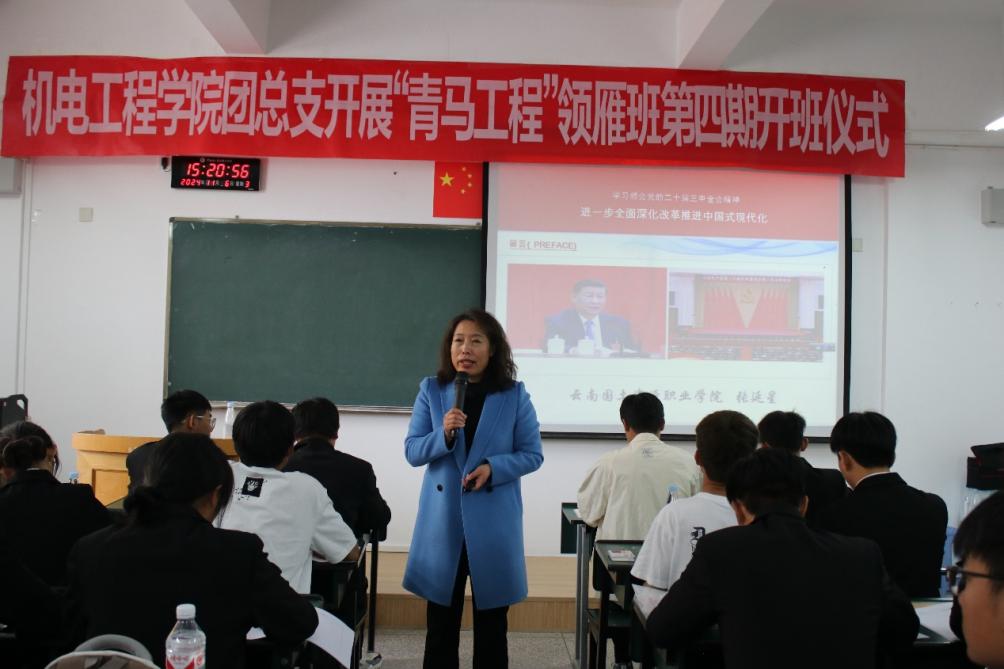 11月6日下午,ALLWINCITY万象城团总支“青马工程”领雁班第四期第一讲在笃行楼314教室正式拉开帷幕。本次团课有幸邀请到学校党委委员、宣传部部长、马克思主义学院院长张延星老师,以《学习领会党的二十届三中全会精神》为专题,为第四期青马班的全体学员带来了精彩的授课。