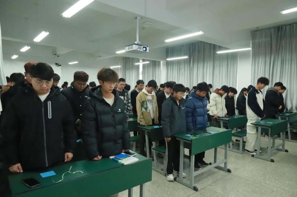 第一项议程,默哀悼念。全体同学起立,向遇难同胞们默哀。在这三分钟的默哀里,整个空间被悲痛与沉思所笼罩,每一个人都沉浸在对历史的追忆之中,表达了对在南京大屠杀中遇难同胞的深切哀悼。