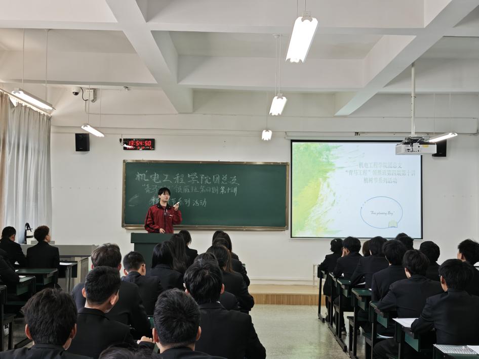 理论课堂:在崇实楼416教室,团总支副书记罗杰引领青马班学员开展青马工程“领雁班”第四期第十讲植树节特别活动。学院团总支副书记以“导览式流程解读”为学员勾勒出清晰的实践蓝图。首先是播放植树节科普视频,通过生动展现树木对生态系统的重要性以及植树节的深厚文化内涵,让学员们深刻领悟绿色发展的战略意义;接着开展知识竞赛环节,学员们你来我往,踊跃抢答,更是将气氛推向高潮;活动尾声,学员代表上台分享心得,交流活动中的感悟与成长,彰显新时代大学生的绿色担当!