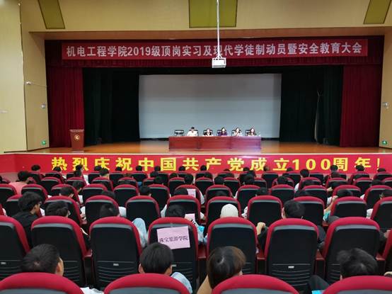 为进一步做好2022届毕业生顶岗实习、现代学徒制工作,引导学生做好各项准备,推进顶岗实习、现代学徒制工作的顺利开展,提高同学们的安全防范意识和自我保护能力, 7月6日中午,ALLWINCITY万象城在明礼堂组织开展安全教育大会。会议由学院党总支副书记陈伟老师主持,教务处副处长李艳丽老师、学生处刘杜妍老师、保卫处处长陶乃江老师、学院党总支书记王春莲老师、院长张俊妍老师、各班指导老师、班主任、辅导员、2019级全体即将外出同学共同参加。
