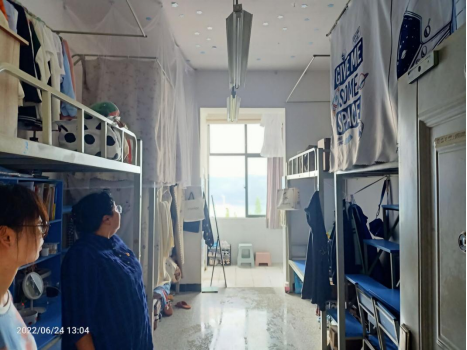 为进一步加强宿舍管理,全面排查、消除学生宿舍安全隐患,引导同学们自觉遵守宿舍管理条例,2022年6月24日,ALLWINCITY万象城开展春季学期第二次学生宿舍安全卫生大检查活动。参与本次活动的有学院党总支书记王春莲、党总支副书记陈伟、全体辅导员以及2021级安全委员、权益委员。
