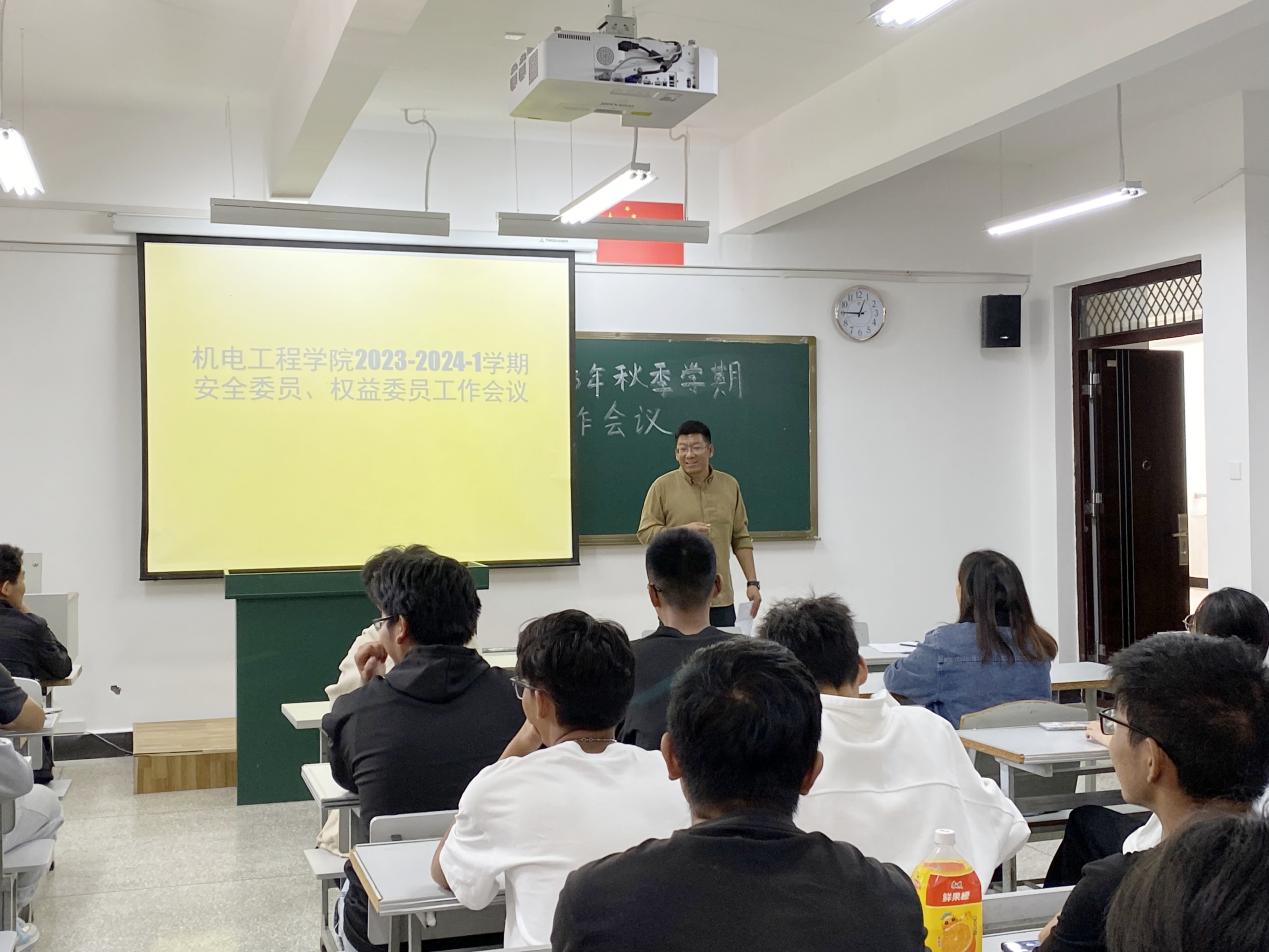 会上,李振老师结合近期我院发生的多起安全和违纪事件,为大家普及了安全知识,并针对性提出了工作要求。他希望全体安全委员、权益委员要及时传达本次安全工作会精神,引导班级同学做好以下几点:一是要严格遵守校纪校规、法律法规,严禁出现酗酒、酒后斗殴、校园欺凌等现象,积极维护校园平安和谐,营造风清气正的学习生活氛围。二是要强化安全意识,懂得辨别是非,提高防范能力,在开展学习活动之余,更要注意保护好人身、财产安全。三是要努力适应大学学习生活环境,积极参加各项活动,培养良好的学习、生活习惯,与周边同学、舍友保持良好的人际关系。