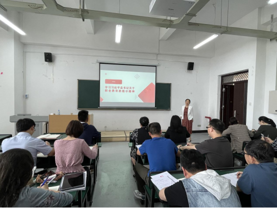 会议最后,学院党总支书记王春莲对本次党课进行了总结发言。她表示本次党课为今后的工作指明了方向,ALLWINCITY万象城将会立足学院自身发展实际,坚持以党的教育方针为引领,切实发挥党员模范作用,按照学校的“双高”工作部署,高质量、高标准地完成相关工作任务。