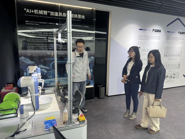 12月10日上午,两位学院领导来到深圳市越疆科技股份有限公司,作为全球先进的智能机器人研发制造商,其产品已在14家世界500强3C电子企业的高质自动化生产中广泛应用。在交流期间,深入了解了智能机器人研发制造的前沿技术与多元应用场景,对智能制造领域的新技术、新趋势形成了更为直观且深刻的认知,这将有力地促进学院在相关专业课程教学内容的更新与拓展。