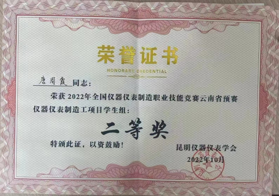 10月27日,由昆明仪器仪表学会主办、云南机电职业技术学院承办的2022 年全国仪器仪表制造职业技能竞赛云南省预赛顺利闭幕,我院师生喜获佳绩,荣获一等奖1项,二等奖1项。